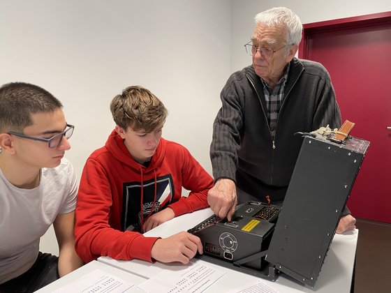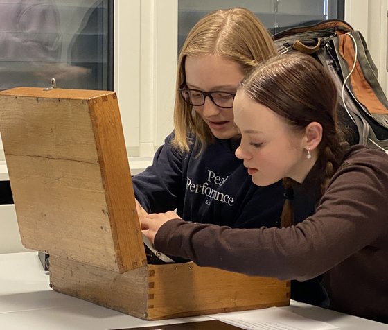 An beiden Maschinen, die an Schreibmaschinen erinnerten, konnten die Schülerinnen und Schüler Hand anlegen und Texte verschlüsseln und dechiffrieren – keine Selbstverständlichkeit, denn die «Enigmas» sind in der Regel nur noch in Museen hinter Glas zu bestaunen. Eingebettet war diese ungewöhnliche Lektion in das Semesterthema «Kryptografie» bei den Mathematiklehrerinnen Chiara Salvini und Hanna Wick.