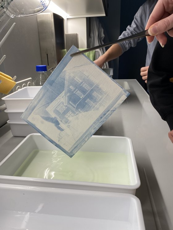 An der KUE haben wir nun zum zweiten Mal in Zusammenarbeit mit BG (Sabrina Barbieri) und Chemie (Manuel Burkhalter) ein Projekt über acht Stunden gemacht, bei dem die Schüler:innen der Klasse 4e (BG-Teil) eigene Fotografien oder Gegenstände mit der Cyanotypie entwickelten und die Resultate dann als Bilderreihen darstellten.