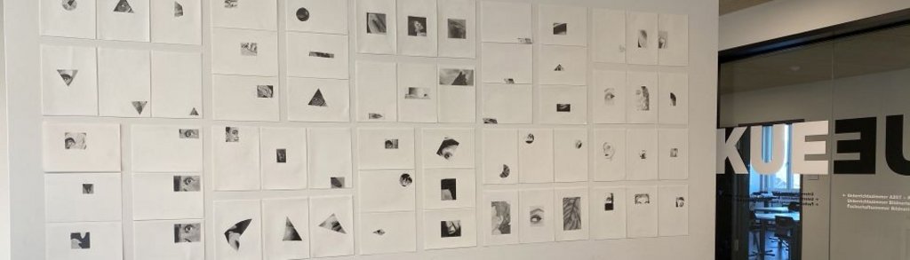 Die Schüler*innen haben je eine dreiteilige Bild Serie entwickelt, indem sie für sich unterschiedliche Kompositionsfragen beantworten mussten: Soll ich Hoch- oder Querformat arbeiten? Welche Formen haben meine Ausschnitte? Variiere ich die Formen? Wie passen die unterschiedlichen Ausschnitts Formen zusammen? Wo auf meinem Papier platziere ich die ausgewählten Ausschnitte? Arbeite ich 1:1 oder vergrössernd, verkleinernd? Wie viel vom Gezeigten muss erkennbar sein? Wie kann ich abgesehen von der Platzierung und der Ausschnitts Wahl, sonst noch erreichen, dass die drei Bilder zusammenkommen? Ist mein Thema noch erkennbar?