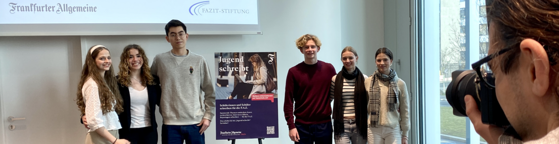 Beim einjährigen Projekt «Jugend schreibt» der FAZ lernen Gymnasiastinnen und Gymnasiasten eine Qualitätszeitung gründlich kennen. Sie schreiben zudem Reportagen und Porträts und überarbeiten sie mehrmals. Wenn die Texte die FAZ überzeugt, werden sie jeweils am Montag auf der «Jugend schreibt»-Seite veröffentlicht. Das Projekt wird seit mehr als 30 Jahren durchgeführt.