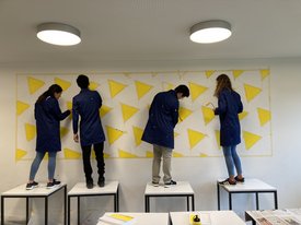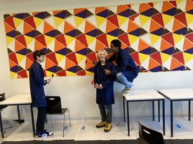 Da nicht alle gleichzeitig an diesem Bild malen konnten, haben die Schülerinnen und Schüler in kleinen Gruppen am Samstagvormittag, am freien Nachmittag oder nach Unterrichtsschluss gemalt, was wir mit den Ausfall einer Doppelstunde kompensierten.