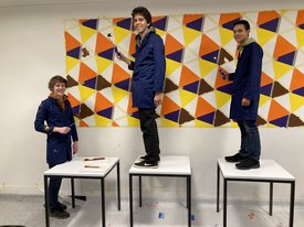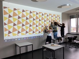 Parkettierungen sind lückenlose und überlappungsfreie Bedeckungen der Ebene, die aus Kacheln hergestellt werden, die alle identisch sein können (z. B. Kachelung der Dusche im Standardbadezimmer), aber nicht identisch sein müssen: Das 4.8 m . 1.6 m grosse Wandbild im Zimmer A209 verwendet vier unterschiedliche Kacheln. Es stellt eine Variante der wenig bekannten Napoleon Parkettierung dar. Besucher sind willkommen.