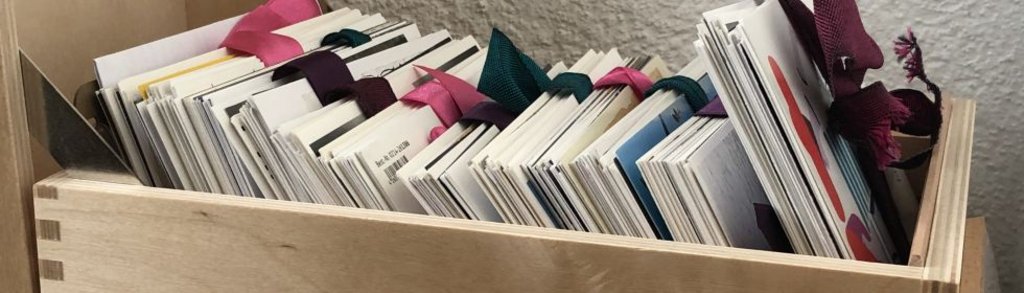 In einem Zettelkasten bekam ich fast 300 Kunstkarten, auf denen mir alle KUE-Angehörigen etwas zum Geburtstag geschrieben hatten.