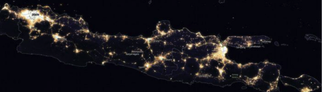 Wir wünschen eine einsichts-und erkenntnisreiche Woche – etwa anhand der Aufnahme von Java, wo das Licht gerade dort, wo es nicht ist, die Besiedlungsstruktur der Insel sichtbar macht: Sie ist durch und durch von den vielen Vulkanen bestimmt, die man als schwarze Löcher sieht.