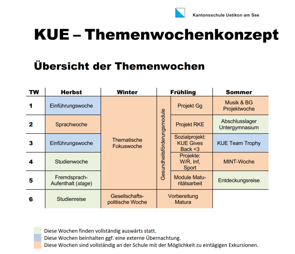 Am stundenplanfreien KUE-Dienstag findet der Unterricht zum Teil losgelöst vom Stundenplan statt. Die Lehrpersonen definieren stufengerechte Projekte, an denen die Schülerinnen und Schüler selbstständig oder in Gruppen während eines bestimmten Zeitraumes arbeiten. Die Projekte können auch fächerübergreifend sein. P steht auch für: problem-, produkt- oder prozessorientiert - je nach Art der Aufgabenstellung.