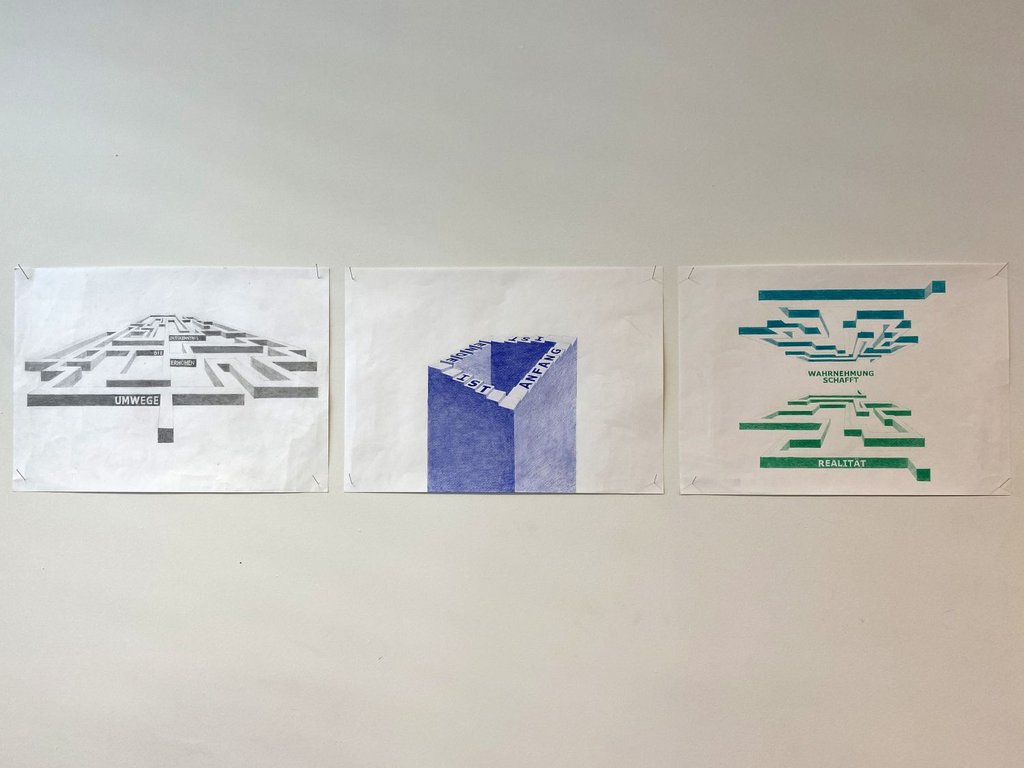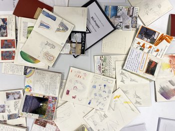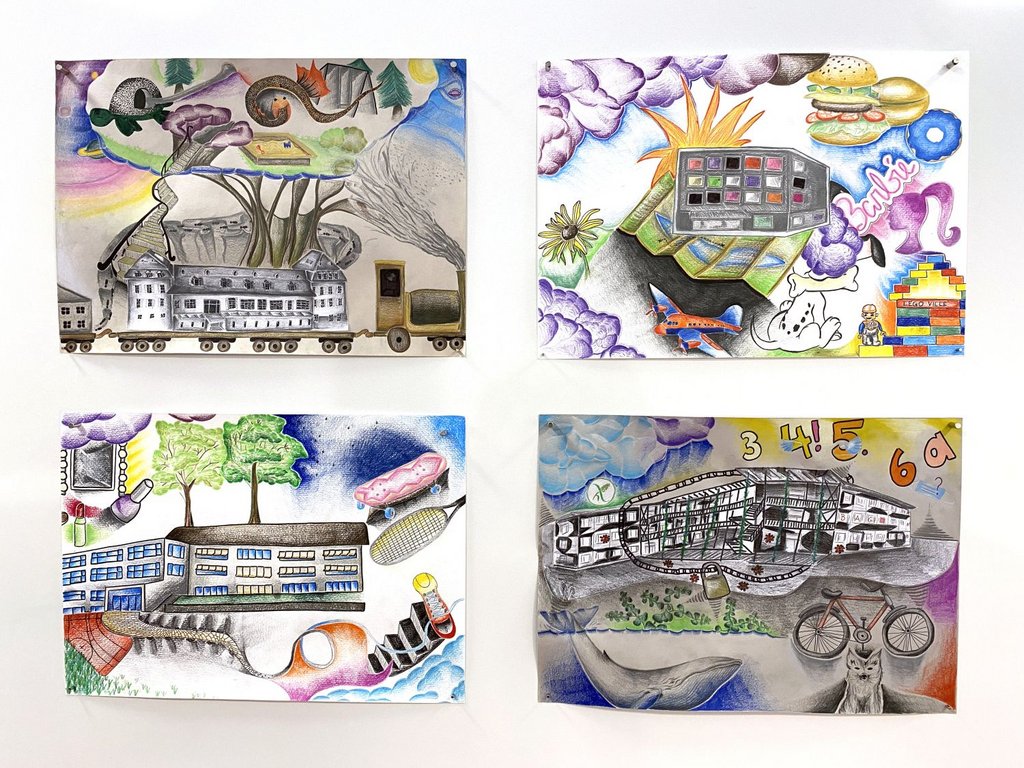 Ein ganzes Semester haben die 5. Klassen selbstständig an einem Projekt im Bildnerischen Gestalten gearbeitet. Entstanden sind persönliche und originelle Bilder zum Thema Weg/weg. Fotografien, Zeichnungen und Skulpturen, die unterschiedlichen Facetten des Themas beleuchten, sind in der Ausstellung zu sehen. Eine minutiöse Sammlung von Frosttagen der täglichen Wege, der Weg des Alterns im Menschen eines Gesichts in fotorealistischen Zeichnungen oder auch der Weg von Frucht und Gemüse zu uns auf den Teller und noch viele Themen mehr, gibt es in der Ausstellung zu entdecken.
