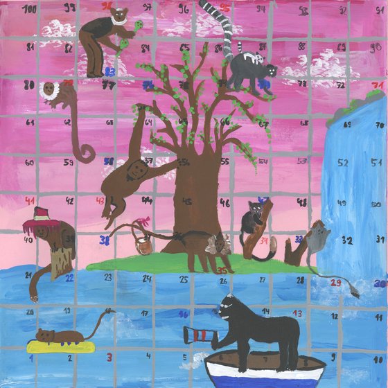 Dies macht es gestalterisch für den BG-Unterricht interessant! Die Lernenden der Klassen 1b und 1d haben im Herbstsemester im Unterricht verschiedene Spiele in Gruppen gespielt und analysiert und schliesslich über mehrere Wochen ein Leiterspiel zum Thema Dschungel, Wald oder Unterwasserwelt geplant und mit Acryl ausgearbeitet.