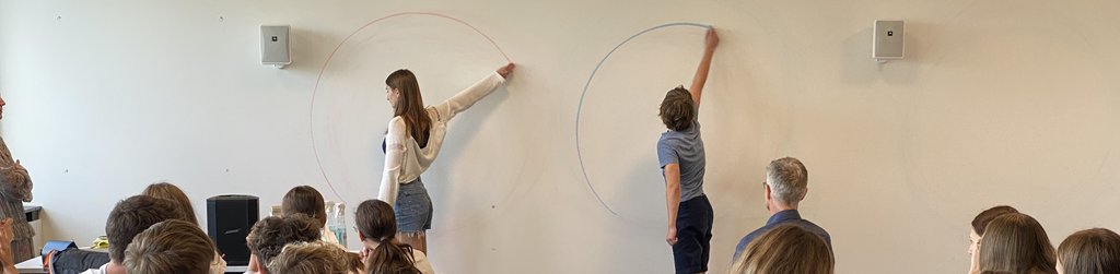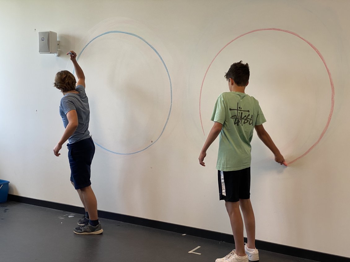 Die Kreise mussten einen Minimaldurchmesser von 50 Zentimetern haben und mit Kreide auf eine Wand gezeichnet werden, mit beliebiger Technik, aber in einem Schwung. Jede Klasse machte eine Vorausscheidung und nominierte 4 Schüler*innen für den KUE-Cup.