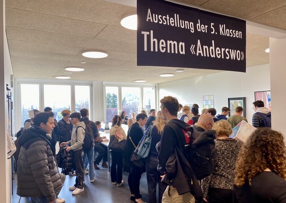 «Am Anfang war die Überforderung», sagte Lara Oberholzer, 5e, in der Eröffnungsrede, «doch dann entstand etwas Cooles, Eigenständiges.» Man habe eine neue Welt kreieren können und sehe nun die unterschiedlichsten Techniken, zum Beispiel Nähen, Zeichnen, Malen oder Fotografieren. «Es war ein gutes halbes Jahr. Lasst euch entführen ins Anderswo!», schloss sie, auf einem Stuhl stehend, ihre Rede.