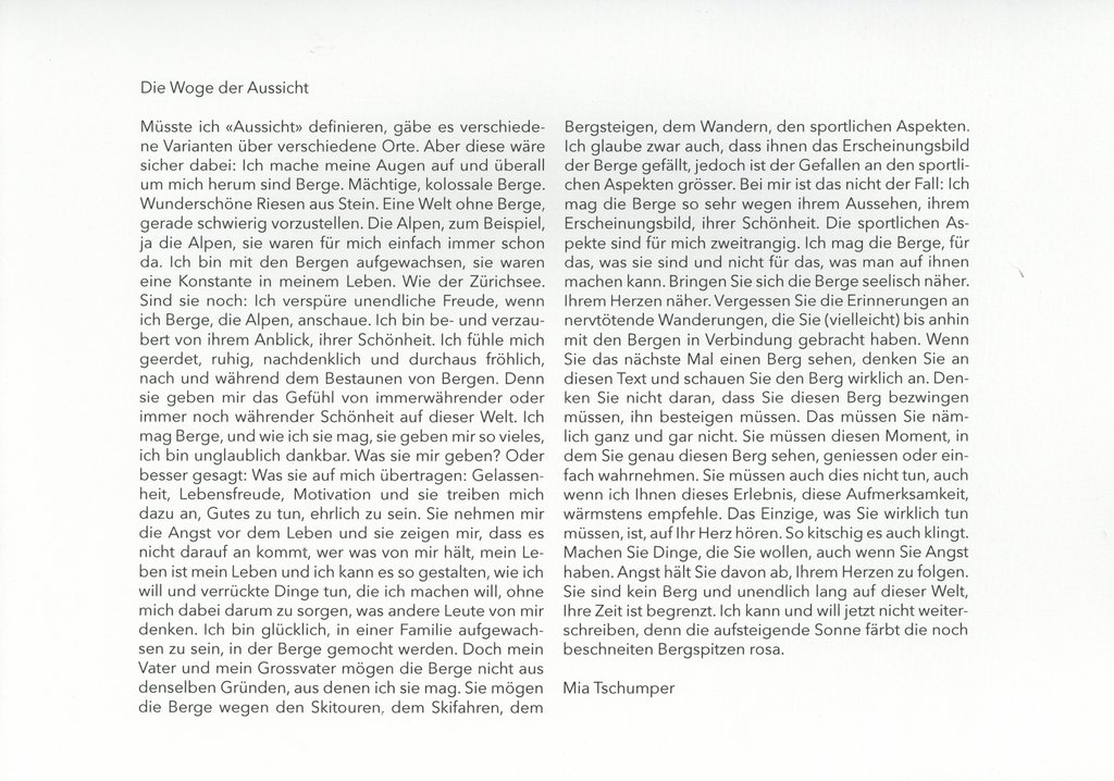 Sollten Sie an einem Bild interessiert sein, so senden Sie die Bildnummer (ersichtlich bei Vergrösserung) inkl. ihrer Adresse per Mail an den oder die Künstler*in (Vorname.nachname@stud.kuezh.ch).