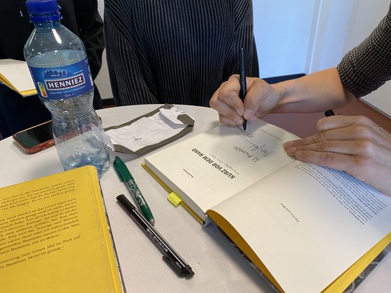 Am Schluss wollten rund 10 Schülerinnen und Schüler das Buch von Eva Rottmann signieren lassen.