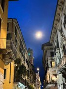 Verona ist nicht nur am Tag atemberaubend, sondern auch in der Nacht. Nach Anbruch der Dämmerung ist besonders viel los auf den Strassen der Altstadt. Die schönen Lokale mit leckerem Essen ziehen unzählige Besucher:innen an und noch mehr, wenn Bacchus in Form einer Weinmesse vorübergehend in der Stadt residiert. So war es bisweilen schwierig, einen Platz zu finden.